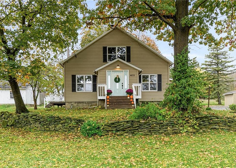 Walk through the front door of this beautifully renovated country home to the open concept family room and large kitchen with island, quartz countertop, white shaker cabinets, soft close doors/drawers, tile backsplash, stainless steel appliances & sink, black finishes & pantry. The family room boasts a modern farmhouse style wood burning fireplace with custom built wood mantle and shiplap wall. First floor master suite has a large walk in closet & brand new bathroom with encaustic tile floor, double sink wood vanity, quartz countertop, large subway tile bathtub surround w/ hexagon tiled shampoo niche. Dining room. Extra-large living room showcasing built-in gallery wall & reclaimed wood ceiling beam. First floor laundry/mudroom. All new luxury vinyl plank flooring covering the entire first floor. The large upstairs loft area could serve many purposes. Bedrooms w/ large walk-in closets. 2nd bath herringbone tile floor, shiplap wall, double vanity & subway tile surround tub. In-ground pool sold "as-is." New: roof, gutters, windows, plumbing & fixtures, HE furnace, electric, service panel, fixtures, devices, hardwired smoke & Co2 detectors, hot water tank & septic holding tank.