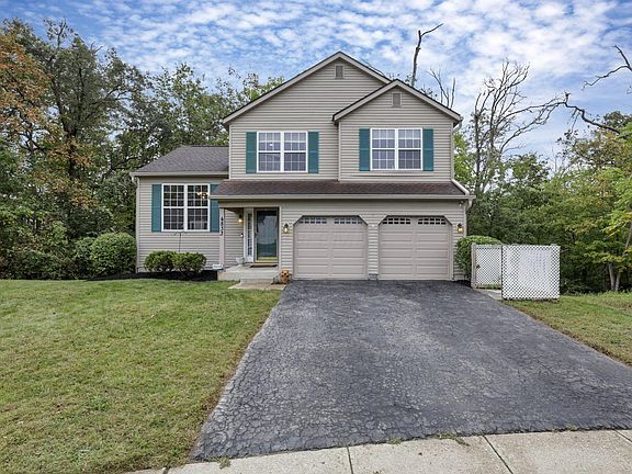 Welcome to this inviting 3-bedroom, 2.5-bath home in a quiet cul-de-sac in Columbus! With 1,558 sq ft of living space, this home offers a bright living room, open dining area, and a spacious family room featuring a cozy wood-burning fireplace. The kitchen boasts granite counters, stainless steel appliances, subway tile backsplash, and plenty of cabinet space. Enjoy gatherings in the open floor plan with vaulted ceilings and natural light throughout. Upstairs you'll find 3 comfortable bedrooms, including an owner's suite with a private bath. Relax on the deck overlooking a tree-lined backyard. Additional highlights include a 2-car garage, updated fixtures, and charming curb appeal. Conveniently located near shopping, dining, and parks!