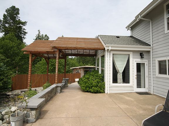 Gorgeous custom home on 5 sunny & private park-like acres! Features vaulted ceilings, 3 fireplaces, wood floors, stunning dining room with floor to ceiling windows, stainless steel appliances, top of the line counters and finishes throughout! Over 2300 sq. ft. w/3 bedrooms, plus an office/den! The outdoor patio is simply amazing w/built-in BBQ & fire pit, waterfall pond and covered trellis. Lots of outbuildings +chicken coop!! Just 10 min to Bellingham!