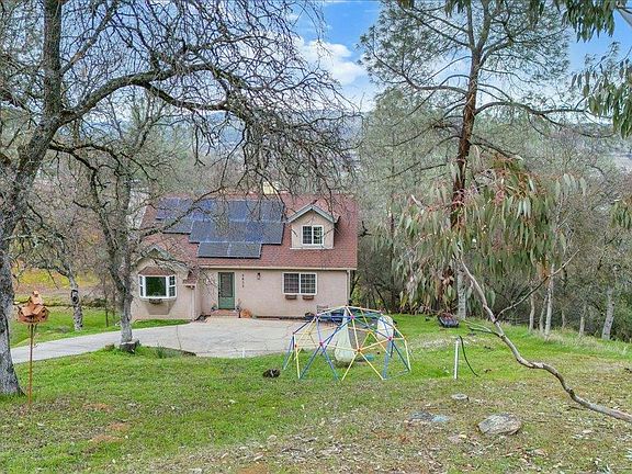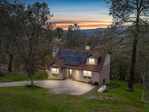 Just around the bend from Lake Tulloch & Kiva Beach & launch,this charming cottage hideaway,tucked between stately oaks & set down from the road,offers peaceful privacy w/captivating lake views from the kitchen, primary bedroom,loft & expansive back deck!Step into soaring ceilings,great architectural lines,a light-filled LR & modern updates.The beautifully remodeled kitchen features a garden-box window,updated s.s. appliances,a convenient pot-filler over the gas stove,solid counters & glistening counter-to ceiling backsplash.In the adjacent dining rm,enjoy backyard views through the French doors.Wood-look flooring makes living easy!The spacious rear TREX deck awaits for BBQs,entertaining & relaxing in the afternoon shade while watching for deer & other wildlife.With nothing but oaks for neighbors,you'll feel miles away from it all!Downstairs,the oversized guest bedroom offers dual closets & plenty of space for visitors,w/an adjacent updated bath & adorable 2nd bedroom.Upstairs,the expansive loft w/private balcony makes an ideal den,playroom,or office,offering the best lake views!The primary retreat is a true sanctuary,w/sitting area,views,large closet & adjacent bath.Step outside & enjoy plenty of space to garden or play.Kids & adults alike will love the zipline & seasonal creek!