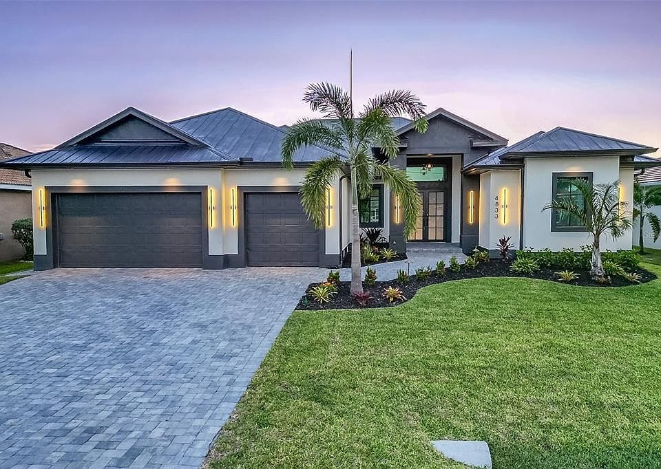 Discover an extraordinary opportunity to own a meticulously crafted waterfront estate in one of Southwest Florida's most coveted locations. This brand-new custom-built luxury home offers Gulf access, positioning you minutes from world-class boating, fishing, and the pristine waters of the Gulf of Mexico. Designed for the discerning buyer seeking both opulence and functionality, this architectural masterpiece seamlessly blends contemporary elegance with resort-style amenities, making it ideal for sophisticated family living, premier vacation rental investment, or exclusive corporate entertaining. This exceptional four-bedroom, four-bathroom residence showcases nearly 2,700 square feet of thoughtfully designed living space, featuring soaring 13-foot ceilings in the main living areas that create an impressive sense of grandeur and openness. Throughout the home, you'll find premium 48"x48" large-format porcelain tile flooring, custom European MDF wall panels, and an attention to detail that exemplifies true luxury craftsmanship. The main living area is enhanced by an elegant atomizing fireplace, creating a stunning focal point that adds ambiance and sophistication to your entertaining space. The gourmet chef's kitchen serves as the heart of the home, complete with high-end appliances, a spacious walk-in pantry, an elegant wine display unit, and a dedicated coffee bar—perfect for entertaining guests or enjoying quiet morning moments overlooking your private waterfront oasis. The private master suite offers a serene retreat with 11-foot ceilings, a spa-inspired ensuite bathroom featuring dual rainfall shower heads, and an expansive walk-in closet with custom organizational systems. Every bedroom has been designed with comfort and privacy in mind, while the thoughtfully appointed laundry room and abundant storage solutions ensure effortless daily living. The expansive three-car garage provides ample space for luxury vehicles, watercraft storage, and recreational equipment. Step outside to your own tropical paradise, where a custom-designed heated pool and spa await, surrounded by elegant travertine pavers and enclosed with premium picture-window screens that frame breathtaking water views while maintaining comfort year-round. The professionally designed summer kitchen creates an ideal setting for alfresco dining and sunset entertaining. Built to withstand Florida's climate with hurricane-impact glass throughout and a durable metal roof, this home offers both peace of mind and long-term value. The recently installed seawall (2023) provides excellent deep-water access with ample space for a custom dock, accommodating multiple vessels. This stunning waterfront estate represents a rare opportunity to secure a premier property in Southwest Florida's competitive luxury market. Whether you're seeking a private family compound or a sophisticated investment property, this home delivers uncompromising quality and the coveted Florida lifestyle. Schedule your private showing today.