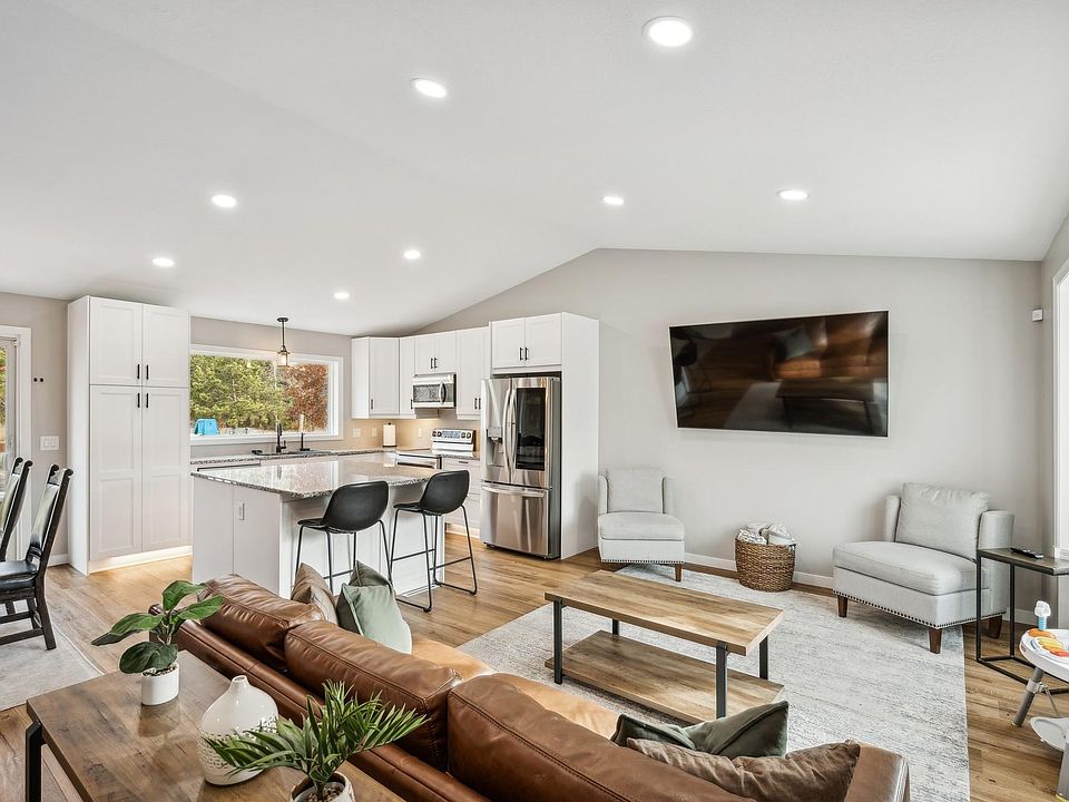 Beautiful does not even begin to describe what the sellers have done inside this home over the last 2-1/2 years. A complete list is under supplements, but here's just a few: In 2022 a complete kitchen remodel with custom white cabinets, stainless steel appliances, massive center island, granite countertops, removed walls to open up the main level, fresh paint throughout the home, new windows including a very large picture window in the kitchen, all flooring throughout, painted white trim & some new trim & baseboards, new bathrooms in 2023 plus furnace, AC, water softener & water filtration system in 2023. Outside the home all new landscaping & a new mound system in 2023. Did I mention a new washer & dryer in 2023? This home is brand new inside since 2022. Go See It!! Sellers added an egress window in the 4th level for a future 5th bedroom if you want one.