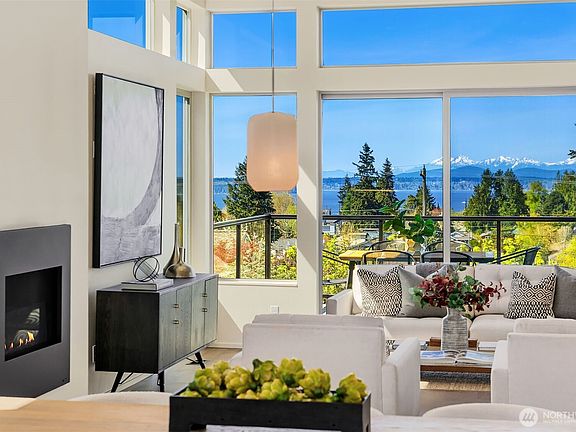 You’ve been waiting for this one—a spacious modern with spectacular west-facing Sound & mountain views just blocks from Alaska Junction! Gorgeous landscaping and a burbling fountain lead to the entry and 2-car garage. The voluminous main level houses an open-plan kitchen, dining, living area, and view deck. A mid-level family room connects to the rear garden, outfitted with a built-in BBQ area & low maintenance deck. The upper level contains the primary suite, with its own view deck, spa bath, and huge walk-in closet, along with two additional bedrooms, a full bath, and an oversized laundry room. Recent updates include all-new engineered hardwoods, new carpet, a tankless hot water heater, and a gas-plumbed firepit. West Seattle perfection!
