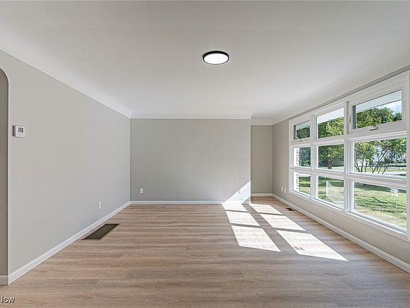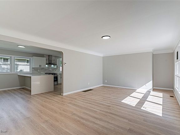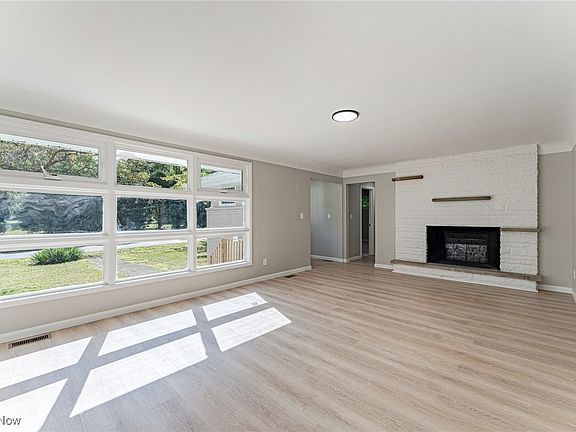Welcome to 4834 Geraldine Road, a fully renovated ranch situated in Richmond Heights. This property boasts 3 bedrooms, 2 full bathrooms, and over 1400 square feet of living space. As you enter through the front door, you are greeted by the well-lit living room adorned with new windows, fresh LVP flooring, and a charming sandstone fireplace. Transitioning to the dining room, which seamlessly connects to the kitchen, you'll discover a breakfast bar, new cabinetry, new stainless steel appliances, tile backsplash, and quartz countertops. The kitchen also provides convenient access to the attached garage. The primary suite features carpeting and a private ensuite bathroom with a walk-in shower. Two additional bedrooms and another full bathroom complete the main level. The fully finished basement offers carpeting, a designated laundry area, and ample storage space. The exterior displays a blend of stone, wood, and brick, surrounded by a generous yard and an attached 2-car garage. Noteworthy, this lot size exceeds that of most neighboring residences on Geraldine Road.
