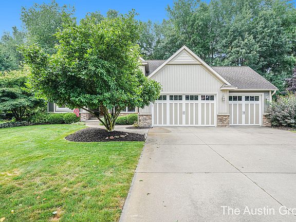 Welcome to 4834 Green Ridge Trail in Hamilton, Michigan. This former Parade Home built in 2004 is a beautifully maintained and updated family home in one of the most desirable neighborhoods in Hamilton. The home sits on a gorgeous .7 acre wooded lot in Greenfield Estates, with privacy and tastefully decorated landscaping. A large driveway with a heated and insulated 3 car garage provides plenty of room for storage. This home offers over 3100 sq. ft of finished living space, including 6 total bedrooms and 4 full baths. The home has been beautifully maintained, and updated with many high-end upgrades. On the main level, there is a primary bedroom and attached bathroom with a walk-in shower, tub, double sinks, and walk-in closet. Laundry is also on the main level.