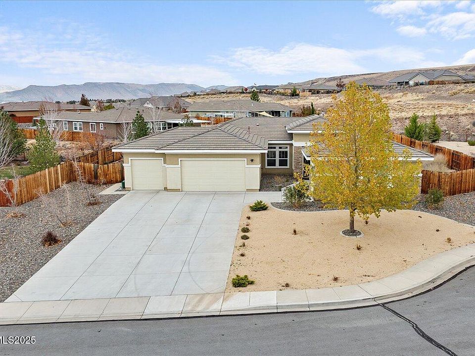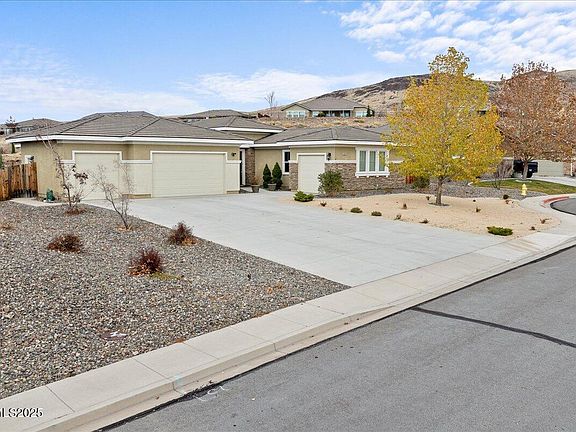 This spacious single-story offers a wide open floor plan filled with natural light. Inside, you'll find a large kitchen with eat-in dining, a comfortable living room with a gas fireplace, two flexible bonus rooms ideal for an office or game room, and a convenient Jack and Jill bathroom connecting two of the bedrooms. The primary suite is generously sized and includes an oversized walk-in closet. The home also features a hard-to-find 4-car garage with built-in shelving, perfect for storage, hobbies, and all the extras. An extra-large driveway provides ample space for additional parking. Set on nearly .39 acres on a quiet cul-de-sac, the property offers privacy, mature landscaping, and room to spread out. The spacious backyard includes a landscaped setting with a gazebo, creating an ideal space for relaxing or hosting gatherings. Located in one of Spanish Springs' most desirable communities, residents enjoy beautiful Sierra Nevada views throughout the neighborhood, along with convenient access to Red Hawk Golf Resort, Golden Eagle Regional Park, schools, shopping, dining, and miles of nearby trails.