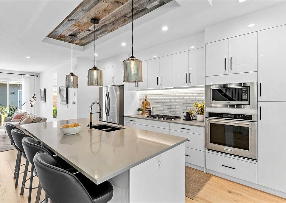OPEN HOUSE Oct 18 11-1pm. PRICE REDUCED! Fall in love with this, next to new, SEMI-DETACHED home that has only been occupied for 3 years! This modern inspired infill delivers over 2,974 sq ft of developed living space, thoughtfully finished with high-end upgrades and a fully developed basement. Just steps from the Bow River pathways, Shouldice Athletic Park, and an easy hop to Market Mall and downtown, this location perfectly balances active outdoor living with urban convenience. The main floor showcases a chef’s kitchen with 12ft ceiling-height, custom cabinetry, a sleek tile backsplash, designer pendant lights, an oversized island with bar seating, a built-in pantry, and premium stainless-steel appliances—including a gas cooktop, Built in double stove, French-door fridge, custom hood fan, and dishwasher. A spacious living room centers around a striking gas fireplace flanked by custom millwork and opens through lfloor to ceiling sliding patio doors to the backyard. At the front, the generous dining area is framed by oversized windows, while a discreet mudroom with built-in benches and full closets keeps everything organized. A private powder room completes the level. Upstairs, the elegant primary suite impresses with huge windows, and a walk-in closet to die for! This walk in closet is every business person’s dream! It’s a must see! The spa-inspired ensuite features dual under-mount sinks, quartz counters, a soaker tub, and a glass shower with a built-in bench. Two additional bedrooms share a stylish 5-pc bath with dual sinks, and the upper laundry room includes matching quartz counters and a convenient laundry sink. The fully developed basement expands your living space with an open rec room and full wet bar, a versatile flex area—perfect for a home gym or office—a fourth bedroom , and a 3-pc bath. Let's not forget about the 20X20 double detached garage will alley access. There's lots of storage for all your mountain adventures in there! Living in Montgomery means riverside pathways, quick mountain getaways, and easy access to Foothills Hospital, U of C, and downtown Calgary—all right outside your door. Why pay for 2025 prices when you can have this one at a lower price point!