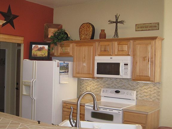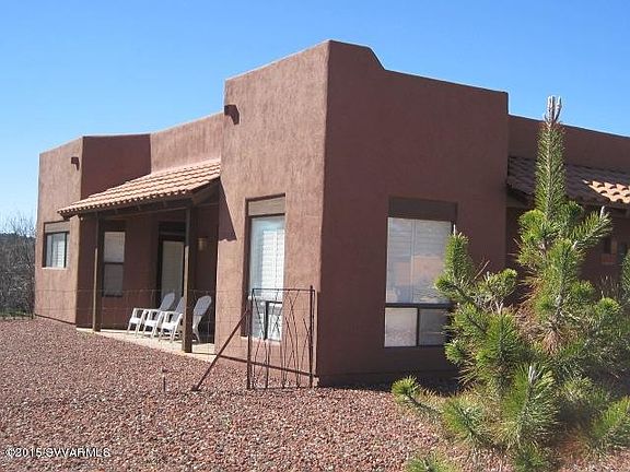 Classic Santa Fe home. 10' ceilings. Great room floor plan. Lots of kitchen cabinets w/under cabinet lighting. Pantry w/pull-outs. Deep sink. Skylight. Convenient powder room. Spacious dining area. Patio outside LR. MBR suite with walk-in closet, separate tub and shower. Jack and Jill bedrooms w/full common bath. Laundry w/additional storage. Plantation shutters throughout home. RV parking and connections. Shed. 1/10th of a mile from Montezuma Well park.