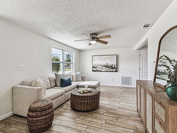 Welcome home to this beautifully reimagined 2 bedroom, 1 bath residence featuring an additional office or guest room. From the moment you arrive, you’ll appreciate the curb appeal enhanced by a brand new 2025 roof, newer windows, fresh exterior paint, and updated landscaping. Inside, an open and inviting floor plan showcases newer wood grain ceramic tile flooring throughout, providing both style and durability. The kitchen features a new backsplash, while the bathroom offers a newly tiled shower for a modern touch. Additional upgrades include a brand new 2025 A/C system for year round comfort. Enjoy a spacious backyard perfect for entertaining, gardening, or relaxing, along with the convenience of a one car garage. This move in ready home is ideal for homeowners and investors alike, combining quality updates, functionality, and long term value. Schedule your showing today, this one is priced to sell quickly!