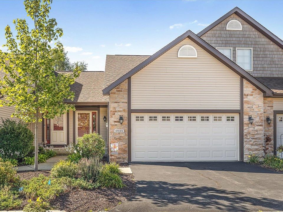 Charming ranch-style condo with full exposure. Everything you need on the main level. Inviting entry to open plan with cathedral ceilings. Maple kitchen cabinets, granite counters, and upgraded lighting. Living/dining area with corner fireplace, slider to composite deck. Primary bedroom with ensuite and walk-in closet. Main floor laundry for convenience. Finished lower level family room with slider to patio, bedroom has walk-in closet, and full bathroom. Ideal privacy for guests. Convenient location.
