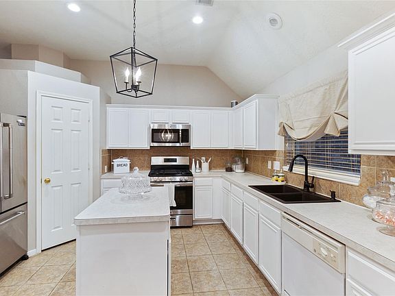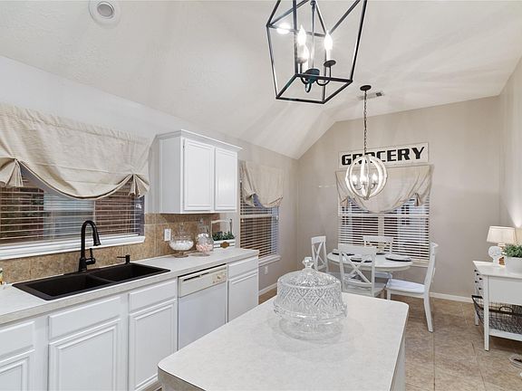 CUTE! CUTE! CUTE! 3/2/2 adorable home in Baywood Oaks West. Home features an island kitchen open to breakfast area. Lots of cabinets and countertop space. Stainless steel appliances. Dining room open to kitchen and living room space. Living room is accented with a fireplace focal point. High ceilings with recessed lighting and lots of natural light. Adorable accented pennant light fixtures in kitchen, breakfast, and dining room. Split bedroom floorplan. Spacious primary bedroom with high ceilings and large accent window. Primary bath with double sink vanity, large soaking tub, and stand alone shower, and walk in closet. New back porch with cover ready to entertain your guests or relax with your coffee. Porch is wired for speakers and TV. Sellers have recently replaced A/C, water heater, and roof(Nov 2020). Home is conveniently located to local schools, restaurants, retail, and not far from access to tollway. This home won't last long!!!