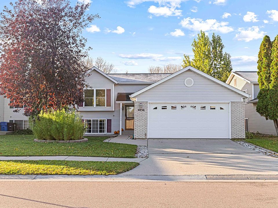 This well-maintained 4-bedroom, 2-bathroom home offers easy access to parks, shopping, and dining. The updated upper-level bathroom features a tiled floor, granite countertop, and a garden tub with double shower heads. The finished basement includes newer flooring in the family room, two additional bedrooms, and a finished laundry and storage room—washer and dryer included. Step outside to a private backyard oasis, complete with mature trees, a storage shed, a newer (2022) privacy fence, attractive landscaping, and a large maintenance-free two-tiered deck with an umbrella that leads to a paver patio. A finished 2-stall attached garage with great lighting and low specials make this home an exceptional find!