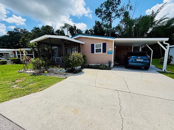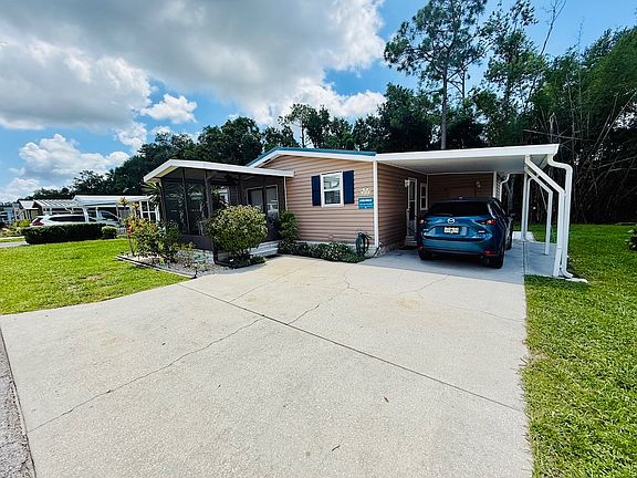 CHARMING 2-BEDROOM, 2-BATHROOM HOME WITH A SPACIOUS BACKYARD AND NO REAR NEIGHBORS!! As you walk in, you'll be greeted by a freshly painted interior. Continue to the kitchen, featuring a breakfast bar, that seamlessly connects to the formal dining area as well as the roomy living room. Further down the hallway, discover the main bathroom that underwent a complete renovation in 2022, showcasing a beautiful walk-in shower, while the master bathroom also boasts a generous walk-in shower with modern upgrades. Both bathrooms are fitted with vinyl plank flooring, contrasting with the laminate flooring found in the living areas. Installed in 2021, carpet flooring enhances both the guest and master bedrooms. Additional improvements include vaulted ceilings, a NEW metal roof (2024), updated plumbing (2021), a new A/C system (2021), a hot water heater (2021), new blinds, as well as upgraded fans and lighting. Finally, the screen room and carport are secured with hurricane tie downs. Ample parking is available with the double driveway. This is your chance to turn your dream into reality! Don't miss out on this opportunity! Schedule your viewing appointment today! **Home is sold partially furnished as advertised in listing.** Lakeland Harbor, a premier 55+, pet friendly community is located in the heart of Lakeland, FL. Strategically positioned between Tampa and Orlando, this community provides convenient access to I-4, ensuring that you are not too far away from a variety of local dining options, extensive shopping venues, and renowned healthcare facilities. At Lakeland Harbor, an active lifestyle is promoted, offering a wide range of on-site activities such as a game room, billiards, horseshoes, and shuffleboard. For those seeking relaxation, amenities include a swimming pool, hot and cold spas, a library, as well as, a spacious clubhouse where numerous events are hosted. This pet friendly park allows dogs of all sizes (no weight or size restrictions). Lot Rent $772 includes lawn mowing. KITCHEN: 10 x 12 • Laminate Flooring • Refrigerator - Frigidaire • Stove - GE (with Vent Hood) • Updated Backsplash • Breakfast Bar DINING ROOM: 9 x 9 • Laminate Flooring • Ceiling Fan with Light • Hutch • Table with 2 Chairs LIVING ROOM: 13 x 15 • Laminate Flooring • Ceiling Fan • Sofa • Rocker Recliner • Desk • Flat Screen/TV MAIN BATHROOM: 6 x 9 • Vinyl Plank Flooring • Single Sink • Walk-In Shower • Linen Closet MASTER BEDROOM: 12 x 14 • Carpet Flooring • Ceiling Fan with Light • Walk-In Closet: 6 x 8 MASTER BATHROOM: 6 x 8 • Vinyl Plank Flooring • Single Sink • Walk-In Shower GUEST BEDROOM: 10 x 12 • Carpet Flooring • Walk-In Closet: 4 x 6 • Twin Bed • Bedside Table - 1 • Lamp - 1 SCREEN ROOM: 12 x 14 • Ceramic Tile Flooring • Patio Table Set • Located Off: Living Room SHED/LAUNDRY: 8 x 10 • Concrete Flooring • Washer - Unknown • Dryer - Unknown • Shelving EXTERIOR: • Vinyl • Double Pane Tilt Windows • Gutters • Carport: Single • Roof Type: Metal (2024) • A/C: Superior (2021) • Air Vents Location: Ceiling PATIO: 10 x 12 • Pavers COMMUNITY: • Clubhouse • Pool • Whirlpool/Spa/Hot Tub • Billiards • Game Room • Library • Shuffleboard Courts • Horseshoe Pits The above information is not guaranteed. It is the buyer's responsibility to confirm all measurements, facts, fees, rules and regulations associated with this particular park. This mobile home is sold "As Is" as described in the description above. There are no warranties or guarantees on this mobile home.