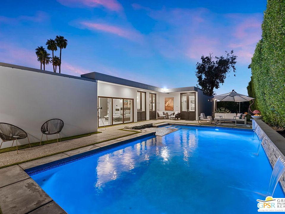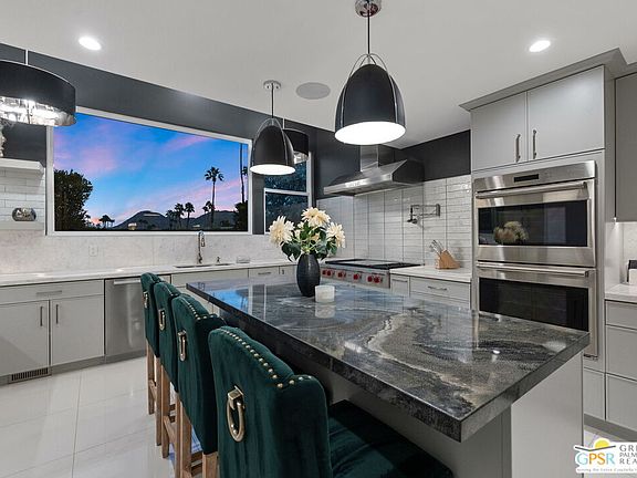 This stunning fully renovated modern home with a separate ADU is a standout in South Palm Desert. Originally built in 1979 and fully remodeled in 2020, the property offers an open-concept design with soaring ceilings, sleek tile floors, and designer finishes throughout. The chef's kitchen is outfitted with Wolf 48" range top, Wolf double ovens, Thermador range hood, Miele tower refrigerator and freezer, Miele dishwasher, Sharp drawer microwave, Insignia dual zone wine and beverage center, and Samsung washer and dryer. The main living areas open seamlessly to the backyard through new Milgard dual pane windows and Sierra Pacific dual pane doors, creating the ideal indoor-outdoor lifestyle. The attached ADU features its own full kitchen, walk-in custom closet, mini-split A/C, and walk-in tile shower. The primary suite boasts two large custom Closet World walk-in closets, designer bath fixtures, Toto toilets, a separate Toto bidet, and Emtek marble door hardware. Additional upgrades include a Lennox condenser and Anthem HVAC system, upgraded 220 electrical panel, two Vesta tankless water heaters, Ring and Vivint integrated smart alarm systems with fire and CO monitoring, and the home is fully wired for surround sound. Outside, the resort-style backyard is designed for entertaining with a custom gourmet outdoor kitchen featuring Firemagic BBQ with rotisserie, BBQ Galore refrigerator, ice and beverage station, wok cooking station, sink with hot and cold water, custom seating, tiled prep areas, and a rectangle fire feature table. The saltwater pool and spa include a Pentair system, heater, three waterfalls, and two fire bowls, surrounded by lush desert landscaping, drip irrigation, and ample privacy. Additional amenities include a three-hole putting green, multiple seating and sunning areas, RV parking pad with hookups behind custom gates, driveway lighting, landscape lighting, and full sensor/flood lighting. This home offers a two-car garage, additional driveway and boat parking, mountain views, no HOA fees, and is short-term rental eligible. Perfectly located near El Paseo dining, shopping, and golf, this move-in-ready modern retreat represents the best of Palm Desert living. Turnkey option: furnishings may be purchased separately, outside of escrow.