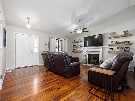 This beautiful home features an open floor plan with a newly remodeled kitchen, boasting stainless steel appliances, granite countertops, and white cabinets. The living area features a gas log fireplace, creating a warm and inviting atmosphere for relaxing or entertaining. The main level offers 3 spacious bedrooms and 2 BthRms, while the finished basement has a 4th BdRm with an egress window and a third bath. The lower level unfinished areas, are perfect for creating a spacious family room or for storage. Step outside and enjoy your own private oasis with a brand-new 16 x 32 Salt Water in-ground pool, perfect for summer relaxation. The large covered patio offers a fantastic space for entertaining, with a fenced in yard that completes your backyard retreat! Also enjoy the oversized 2 car garage. Also staying with the house is the Large Gun Safe and Desk that are in the Basement.