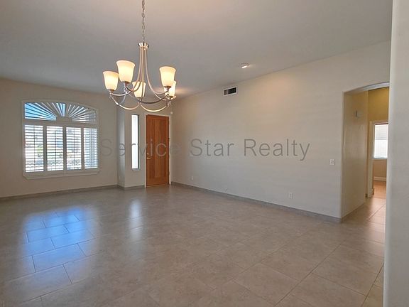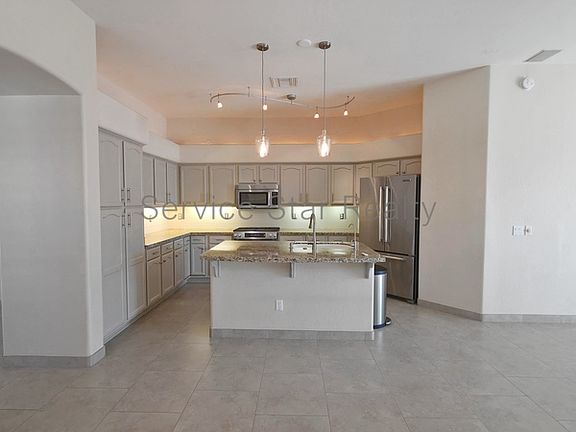Elegant tile flooring can be found throughout, and leads you from the formal front entry room, to the family / entertainment room, kitchen, and dining space.