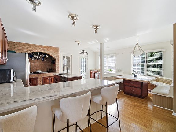 Brick-surround fireplacePrivate double-sink bathroomArchitectural dormersGenerous light-filled roomsPalladian arched windowSpacious islandArched windows