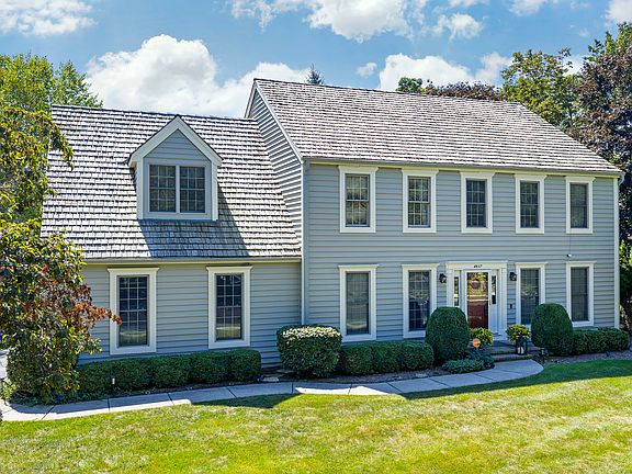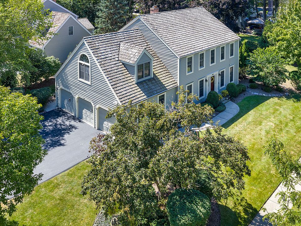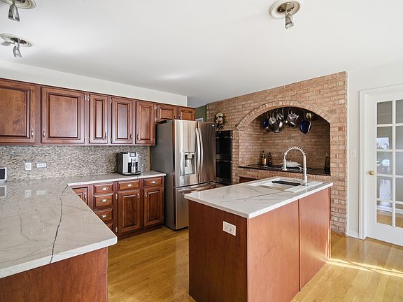 Sophisticated Georgian with welcoming path to the charming red door is set on a beautifully landscaped corner lot with an impressive 3-car garage. Architectural dormers and arched windows elevate the home's timeless curb appeal. Inside, this well-appointed 4-bedroom residence offers generous light-filled rooms designed for every purpose. An updated Kitchen shines with new quartzite countertops, stainless steel appliances-including new LG refrigerator, new Whirlpool dishwasher, new GE double oven-plus an eye-catching restaurant-style brick accent wall. A spacious island and inviting breakfast area with banquette seating create the perfect setting for casual dining and gatherings. Adjacent is the intimate Family Room with brick-surround fireplace featuring sliding glass doors to the splendid yard. Two staircases lead to the upper level featuring a serene Primary ensuite with private double-sink bathroom, whirlpool tub and huge walk-in closet plus three additional bedrooms including a supersized fourth bedroom with built-in window seat, palladian arched window and custom built-in shelving, ideal as 2nd family room or study lounge. The lower level adds more flexibility with a custom built-in bar and large recreation/media space. Outdoor entertaining is effortless on the custom paver patio overlooking the lush backyard. Recent updates include new front door, new asphalt driveway, freshly painted exterior, newer furnace (2022), newer A/C (2021), newer sump pump (2022). Located in the desirable Providence Village close to highways, dining, and shops, this is the perfect family home to celebrate holidays and create forever family memories.