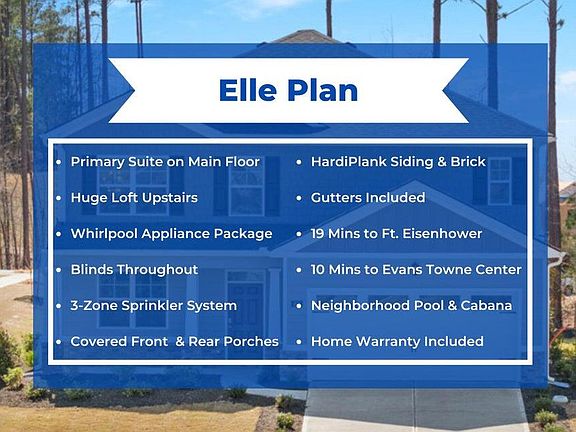 LARGE CUL-DE-SAC LOT WITH AN UNFINISHED BASEMENT HOME! Welcome to Southwind Village conveniently located in the Evans! Phase III is now open, under construction and ready for new homeowners Discover the allure of the exquisite Elle plan offering 5-bedroom, 3.5-bathroom, 2721 sf. with the primary bedroom down. Unlock the potential of this home with its spacious unfinished basement - a blank canvas just waiting for your personal touch. Unwind on the charming covered front porch or revel in the convenience of a 2-car garage. Seamlessly integrated with a smart home package, this home boasts a doorbell camera, smart lock, Wi-Fi-enabled thermostat, and an Alexa Echo Dot for effortless connectivity. Enjoy the benefits of a swim community with a neighborhood pool and relish the ease of an owner's suite on the ground floor, alongside a very spacious bonus room for versatile living. Nestled in the heart of Evans, this home embodies modern comfort and community living at its finest. Pls note this home will not have a fireplace. THIS HOME IS UNDER CONSTRUCTION. PHOTOS ARE OF LIKE HOME. Home and community information, including pricing, included features, terms, availability and amenities, are subject to change and prior sale at any time without notice or obligation. Square footages are approximate. Pictures, photographs, colors, features, and sizes are for illustration purposes only and will vary from the homes as built. D.R. Horton is an equal housing opportunity builder.