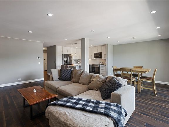 Welcome to 4838 Howard St - Unit #401. A top-floor, move-in ready gem in a beautifully maintained elevator building. Spacious 2 bedroom, 1.5 bath condo offers the perfect blend of comfort, style, and convenience - with garage parking included. Step inside to a bright and open floor plan featuring a welcoming foyer, expansive living and dining areas, and a modern kitchen designed for entertaining, complete with a breakfast island, 42" white shaker cabinets, granite countertops, and SS appliances. Oversized primary bedroom easily fits a California King bed with plenty of room for additional furniture and both bedrooms offer generous closet space. Enjoy tasteful updates throughout including: HVAC system (furnace & AC) replaced in 2020, updated plumbing, laminate flooring in main areas with cozy carpet in bedrooms, updated bathrooms with modern finishes, recessed lighting and stylish light fixtures, freshly painted interior, and all newer windows and a sliding glass door. Relax on your private balcony, on-site laundry, a dedicated storage unit on the same floor as the unit. Located in the highly rated Niles West School District, with easy access to I-94, public transportation, shopping, dining, and more - this home checks all the boxes!