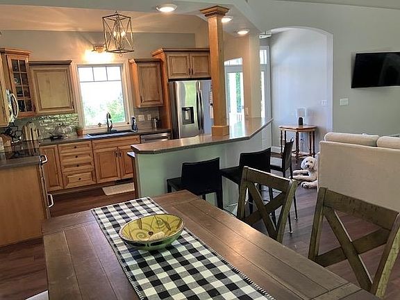 This Charming Home Awaits: Nestled and elevated with expansive views of the valley below and Crooked Lake, this 4-bedroom, 3-bathroom home sits on a quiet cul-de-sac in a small subdivision with convenient access to Petoskey's restaurants, Petoskey State Park, and local ski resorts. The 2,100 square foot home features an open floor plan with 9-foot and cathedral ceilings that create a spacious atmosphere throughout. The kitchen offers stainless steel appliances, solid surface countertops, and a walk-in pantry, with breakfast bar seating. The living area centers around a gas fireplace, while large windows frame breathtaking views. Luxury vinyl flooring flows seamlessly throughout the main level. The primary suite includes a walk-in closet, double vanity, tile shower, and jetted tub, while two additional main floor bedrooms share a full bathroom. A large laundry area and mudroom add convenience. The bonus room above the two-car heated garage comes complete with a full bath, walk-in closet, skylights, and lake views—perfect for an office, guest suite, or recreational space. The home also includes stone retaining walls and maintenance-free siding. Outdoor living is enhanced by professional landscaping with gorgeous perennials, a covered front porch, and private rear deck with Trex decking, all ideal for enjoying the panoramic scenery. This well-designed home blends modern comfort with natural beauty in a peaceful setting. Schedule your private showing today to experience all this exceptional property has to offer!