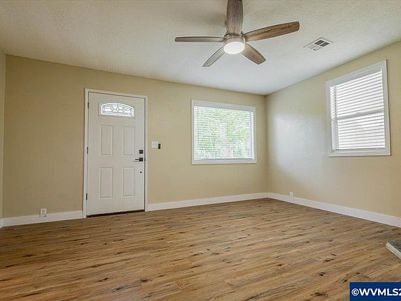 This is a must see home in Mill City with mountain views on a spacious .24-acre lot. The well-maintained home features newer siding, a newer roof & vinyl windows. Inside, you'll find 3 bedrooms (one currently used as an office) & a tastefully updated bathroom. The kitchen boasts newer stainless steel appliances, while the entire home features luxury vinyl wood plank flooring. Step outside to a fully fenced backyard, complete with a patio area and a large firepit—perfect for outdoor entertaining.