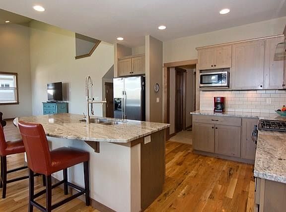 Here is the craftsman style and inviting floorplan that everyone loves! Big, open living room offers tons of light and a gorgeous fireplace. Large kitchen with granite countertops and stylish finishes is perfect for family moments or entertaining friends. The dining area offers room for a large table and leads to the covered back deck for ease of inside/outside dining. The master bedroom is on the main floor and has an inviting master bath, complete with a soaking tub. An additional bedroom on the main floor could also function well as an office or den. Laundry room is off the kitchen and offers space for built-in lockers which helps with day to day activities. Upstairs is an open to below family room, two good-sized bedrooms and a full bath with dual sinks. The garage offers three spaces in a tandem style which gives additional recreational vehicle storage and/or work space. You will like this home from the moment you enter...make it yours today!