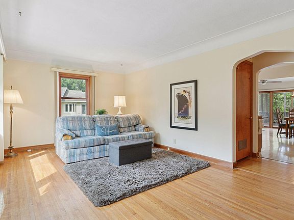 This delightful 1 ½ story home has been lovingly cared for by the same owners for over 60 years! Tucked away in a super convenient, low traffic neighborhood, this sweet & sundrenched property is surprisingly spacious with a wonderful main floor family room addition and sliders to a big, breezy screened porch & large patio area! The kitchen is open to the family room with a handy breakfast bar area. The upper level has two bedroom areas & a half bath - the perfect space to reimagine into an owner's suite! The living room has charming coved ceilings & original hardwood floors. Two additional bedrooms on the main floor also have hardwood floors & a full bath rounds out the main floor. The lower level has good ceiling height & tons of opportunity for expansion & storage! The addition has a full basement, several windows were replaced in 2020 & the home has 200 AMP breakers as well as a handy storage shed. The lot is large & lovely with mature trees & private views. Enjoy this special property as it is or bring your ideas to level it up & make it your own!