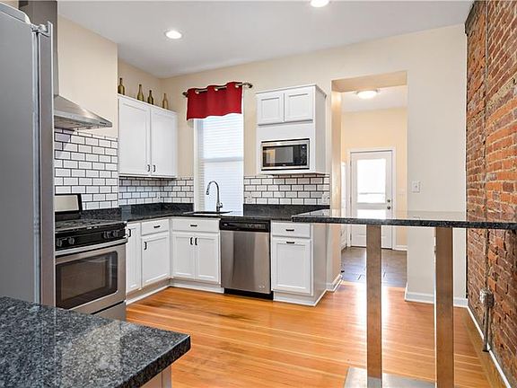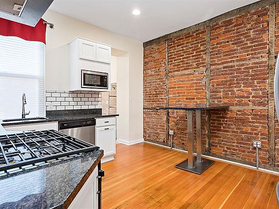 Updated, well maintained Row house in the highly sought after Lawerenceville area. Close to Butler St, shops, dinning, entertainment and hospitals! This charming 2 bedroom 1 bath is ideal convenient city living. Beautiful hardwood throughout the living rm and kitchen, as well as exposed brick walls & recessed lighting provides modern industrial feel. Beautiful updated kitchen w/classic white shaker cabinets, dark granite and stainless steel appliances. Off kitchen leads to a charming farmhouse feel mud rm w/ custom shelving & wood plank wall feature. 2nd floor offers large master w/ ensuite. Barn style door leads to updated ensuite w/floor to ceiling tiled walk-in shower, double sink vanity and laundry space for easy convenience! Hardwood floors throughout Master & 2nd bedroom. 3rd level offers additional rm, ideal for an office space. Clean unfinished basement.Outside deck & fenced yard offer space to entertain w/privacy. Rare detached garage & off street parking area in rear of home!