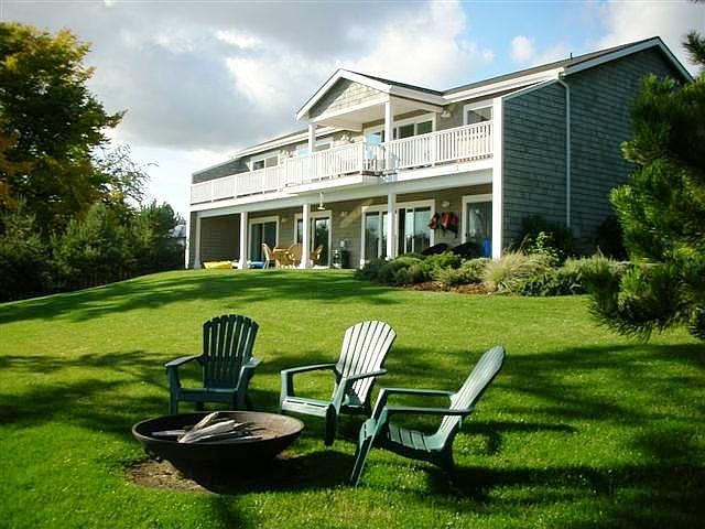 Close to town...125+/- south facing waterfront. 3 bedroom, 4 bath, 3404 sf quality home. Finished 568 sf 2-car attached garage w/shop space. Main floor is 1724 sf with 1 bedroom, office & 2 baths. Large gourmet kitchen, open floor plan, propane fireplace & 510 sf of waterproof deck. Daylight basement is open 1680 sf w/ 2 bedrooms and 2 baths, propane fireplace and 562 sf of stamped concrete patio. Large storage area. Shared dingy dock. Great for kayaks. Seller is licensed real estate agent.