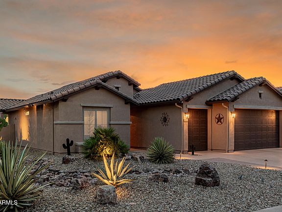 Highly desired Montecito with private Salt Water Pool. Enjoy 4 remote Screens = Patio room use all year long! So many upgrades and improvements see list. Corner premium lot with Professional Landscaping front & back, Solar Screens, Epoxy Driveway, Garage and all Walks. 2 Car Garage with 4 foot extension + Golf Cart Garage with Split A/C temp control! Built-in Cabinets too! You will love the All Tile Floors, Granite Counters & Island. Bump-out Bay Windows for more Dining area. Separate Den or Office. Large Primary Bedroom with Bump-out Bay Windows and Barn Door add privacy. Laundry Room with cabinets, Washer & Dryer. Additional inviting Guest Bedroom(was used as office) and Full Second Bathroom. Wait until you see the POOL and PATIO.....nothing to do but jump in! Best VALUE for Pool!