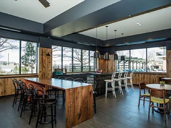 This apartment is equipped with a GE side-by-side refrigerator or a Samsung French door refrigerator, upgraded vinyl plank flooring, quartz countertops, a GE dishwasher, a stainless steel kitchen faucet, a GE 30' electric range, subway tile backsplash, and a full-size GE washer and dryer. Enjoy access to a 24-hour fitness center with free weights and video-enabled cardio machines, a resort-style pool courtyard with grilling stations, a fireplace and seating areas, a social lounge with a dining/private meeting area, a game room with billiards and shuffleboard, a co-working space with private offices, privacy pods, an 8th-floor sky lounge with an exterior patio and city views, a Starbucks hot beverage station, a dog run and paw spa with a pet bathing station and dryer, and controlled-access bike storage and a bike wash.