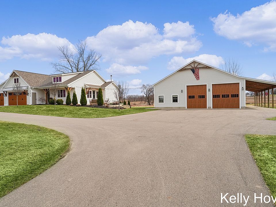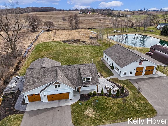 Welcome to this meticulously designed 5-bedroom, 5-bathroom home, that also includes an in-law suite. This suite is zero entry, ADA compliant, has separate entrance and private patio. Every detail has been considered. The open-concept custom kitchens (YES, two!) feature all Bosch appliances, quartz countertops and engineered hardwood floors. The fireplaces (again, yes TWO!) in both the primary living area and suite are perfect for quiet evenings or enjoy the peaceful view while relaxing on the patios (again, YES TWO!). The list of extras continues with 8' doors, tankless hot water heaters, invisible pet fence, and can you picture a pool in the pack yard?! I CAN! The impressive barn (44' x 64') speaks for itself with its kitchen, full bath, 23' x 15' office space, and multiple 240-amp and multiple 240-amp outlets. This property is nestled on 3+ acres and has too many amenities to list -truly, a property where luxury meets functionality!