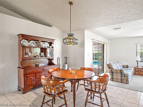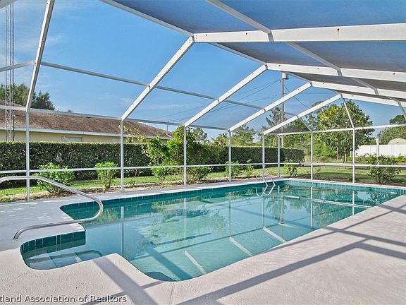 The roof was replaced in January of 2016 and the A/C was fully replaced in May 2022. The pool is 15' by 30' and is caged with some newer screens which were replaced after the last hurricane. There is a well for the 7 zone sprinkler system. The large main bedroom has a double slider pocket door and this lead into the covered area patio and to the pool. Placid Lakes has a central water system, a lake front park which gives you great access to beautiful Lake June for only $35.00 a year. There is a also a golf course which is open to the public and has a great restaurant in the club house. You are very close to the lake Lake Placid which has a public access boat ramp. The HOA is voluntary and is only $25.00 a year. Placid Lakes is approximately 10 to 15 minutes from "Up Town" Lake Placid.