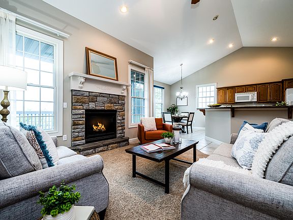 You will love this wonderful two bedroom, two bath condo in the 55+ Heritage Village Villa community. The association takes care of all of the outside maintenance, lawn care they even plow your driveway. The kitchen and living room have an open floor plan with cathedral ceilings. Enjoy the view out back from the large windows in the dining area or relax on the inviting deck overlooking the adjacent farm field. The kitchen has plenty of cabinet space and a great center island. The home features a main level laundry and main level primary bedroom with bath, walk in closet and a door leading out to the rear deck. The basement will allow plenty of storage and is ready for any future plans by having an egress window and has the wiring to add a generator.