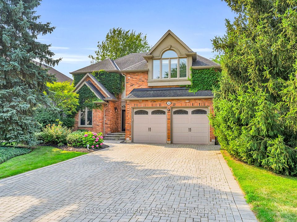 Welcome to 484 Bush Drive. This gorgeous home features over 5,600 square feet on all 3 levels. The large 4 car interlock driveway welcomes you to this stately home with a flagstone porch, landscape lighting, irrigation system, exterior pots in soffits, double door entry and oversized double garage. The main floor features hardwood floors (refinished 2025), large foyer, formal living room, expansive dinning room, sunken family room, laundry, large office and a bright eat in kitchen with double door phantom screen entry to backyard. The second floor has an open and sun filled landing which leads to the double door entry for primary suite. This oversized suite spans the entire back of the house with a gas fireplace, built-ins, motorized blinds, a walk-in closet and completely renovated primary ensuite (2024) with air tub, porcelain floors, custom solid wood double vanity and glass enclosed shower. 3 additional large bedrooms, 1 with ensuite and another gorgeous renovated bathroom (2024) with glass enclosed shower, soaker tub and custom vanity. Fabulous lower level perfect for a nanny or in-law suite with a second full kitchen, 2 bedrooms, 3 piece bathroom, recreation room with built-ins and projector screen. Fully landscaped backyard with custom wisteria covered pergola with lighting and stone gas fireplace, fountain, privacy screen, built-in bar, gas barbecue, granite topped table and meticulously manicured gardens. Spectacular location, minutes from the 403, around the corner from the Hamilton Golf and Country Club and a 5 minute drive from the Meadowlands shopping centre. Dont miss this opportunity to own one of the biggest homes on this spectacular street.