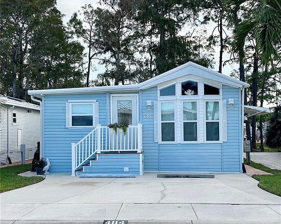 Thank you for viewing 484 Cheetah Drive in Imperial Wilderness – a gated 55+ community that is beautifully maintained, fun, and active! The home features a large, fully updated, kitchen. There is an en suite with queen bed and completely updated bathroom. The ample living room provides space for an office area, TV viewing, and table/chairs. Plus, there is a queen-size Murphy bed. The fully updated second bath is just off the living room. This bath also contains a large capacity, stacked washer/dryer unit and linen closet. Vinyl, scratch-resistant, plank flooring runs throughout the home. The relaxingly themed decor is consistent. Maintaining this, the cozy screened lanai exits onto an outdoor entertaining space with lush views. Additional major updates include hurricane resistant windows (with hurricane shades), siding, plumbing, and drywall. In addition to all of these features, YOU OWN THE LAND, and the low HOA fee ($792.00 per quarter) covers so much: water, lawn care, basic cable, trash/recycling, and community amenities. Community amenities include the following: 2 pools with spas, bocce, pickleball, tennis, shuffleboard, billiards, a library, clubhouse, dog parks, and more!