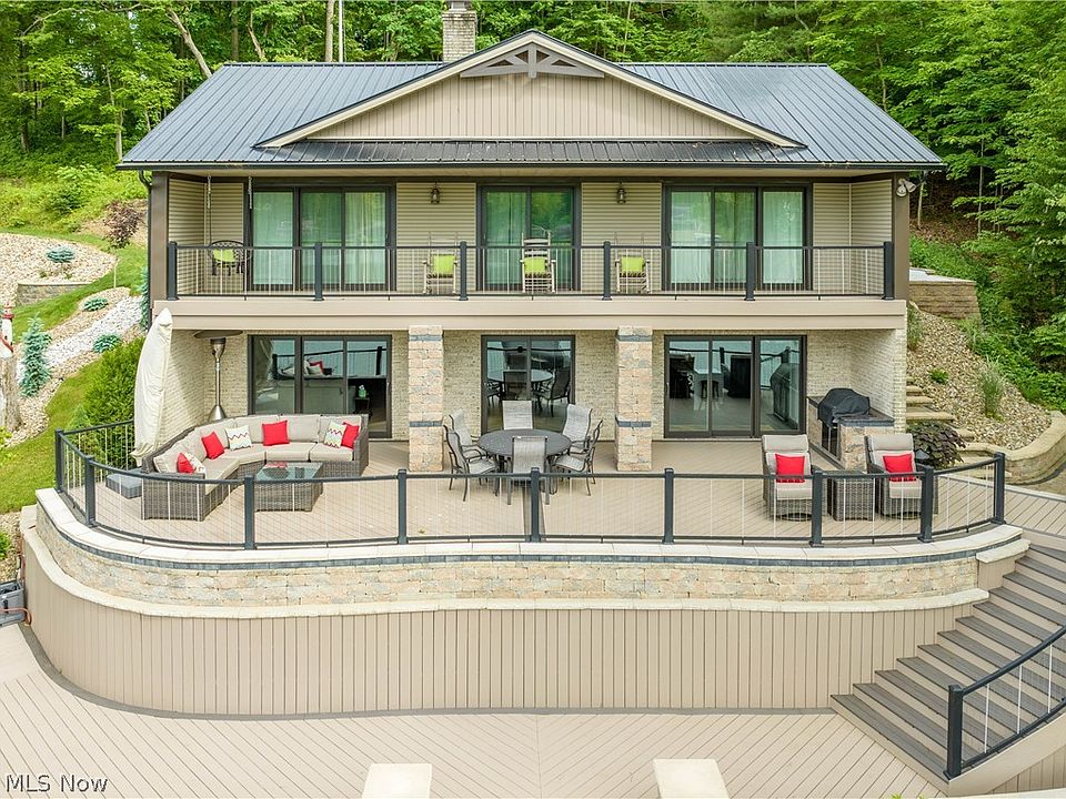 Meticulously updated and decorated, this beautiful Lake Mohawk home offers lake life at its best! An inviting living room sectional offers a cozy spot to unwind in front of the dual sided gas brick fireplace shared with the dining area and an expansive kitchen that features a gorgeous island with microwave, and refrigerator drawers (2), upgraded cabinets with roll out trays, quartz counters, and direct access via the triple sliding glass doors to the tiered composite deck with a built in grill, dining and lounge area. A curved stair case leads to the lower deck featuring a private hot tub and stairs to the lakeside patio, fire pit, and 85’ of docking for 3+ boats, stairs for swimming access, and lounging space. After a day on the lake retreat to a beautiful master suite with vaulted ceiling, triple sliding glass doors leading to a composite deck overlooking the lake, an ensuite with dual sink vanity, granite counter, walk-in shower and a spacious closet for an organized storage oasis.