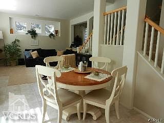 BANK APPROVED PRICE!!! Super Clean, Well maintained Turnkey home! Bright, open, airy 3 bedroom, 2.5 bath home + loft. Home has Formal Dining and Living rooms with lots of crown moulding, architectural nooks, arches. Neutral paint throughout with sponged, marbled designer paint techniques. Family room off open island kitchen has many Prairie-Style windows to allow view of low maintenance private yards. Enough room in kitchen to allow for table and chair set. Backs to heavily treed watershed green belt where deer, heron, are occasionally seen. Protected Oak tree area abuts one side of property with only 1 neighbor on other side. Large double door Master Suite off open loft area, laundry room, plus 2 more bedrooms all up double access stairs. Loft could be office or playroom, 2nd family room. Home has 3 car garage with lots of storage. Flooring is new carpet, wood, and tile. Situated in upscale Twin Oaks complex of Newbury Park, close to schools, Big Sycamore Park, Peppertree Sports Park, Mountain to Sea bike ride, jogging, dog walking, nature trails, easy access to freeway.BANK APPROVED PRICE!!!