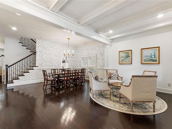 Welcome to this elegant 5-bedroom, 4-bathroom home nestled on a quiet cul-de-sac in the heart of Sandy Springs. Just steps from premier shopping and dining, this beautifully updated residence offers timeless design, thoughtful layout, and luxurious finishes throughout. Step inside to find a bright, open floor plan featuring a stunning renovated kitchen with custom vent hood, designer finishes, a generous center island, and ample cabinetry. The kitchen seamlessly flows into the spacious living room with a cozy fireplace and direct access to the flat, walk-out backyard, ideal for entertaining or relaxing. Adjacent to the kitchen, a butler’s pantry connects to the formal dining room, and the elegant formal living room offers additional space for hosting or relaxing. A main level bedroom and full bath make a perfect guest suite or home office. Upstairs, a large landing area serves as a versatile bonus space or playroom. The oversized primary suite boasts dual walk-in closets, double vanities, a soaking tub, walk-in shower, and a private water closet. Three additional bedrooms complete the upper level—one with an en-suite bath and two sharing a Jack and Jill bathroom. Enjoy outdoor living in the private backyard with a stone patio and mature landscaping. A covered front porch, 2-car garage, and custom details throughout add to the charm and functionality of this exceptional home.