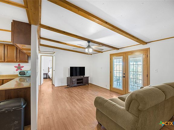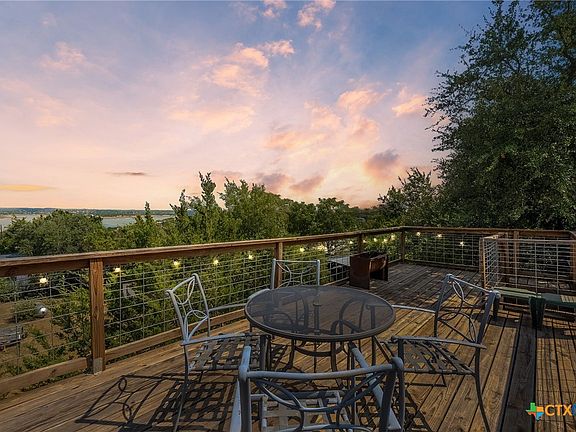 Always dreamed of owning a lake house? Here's your chance! This charming 3-bedroom, 2-bath home is perfectly situated on a double lot (.32 acres) among mature trees, less than half a mile from Canyon Lake access. Enjoy a BIG water view from the newly built upper deck and peaceful sunset vistas over the treetops. Inside, the open-concept layout features a spacious living room, large kitchen (refrigerator stays), dining area, and inside utility room. Tile and laminate floors throughout-no carpet! The split primary suite offers a walk-in closet, oversized tub, and separate shower. Two additional bedrooms share a beautifully remodeled secondary bath. Step outside the French doors to the generous back deck (approx. 17' x 11'), perfect for entertaining or unwinding after a day on the lake. Ample parking with space for your RV, boat, or lake toys. Updates include a 3-year-old metal roof, HVAC (2014), kitchen remodel, flooring, and more. Home and deck were releveled, and the septic was pumped in 2019. Propane tank fuels gas fixtures; outdoor workshop provides extra storage. Front ramp access can be removed to utilize the attached carport.