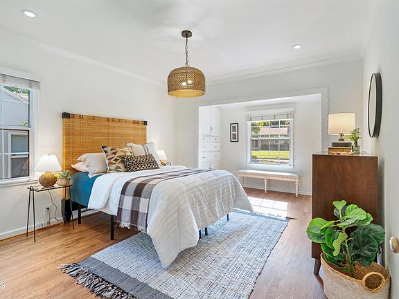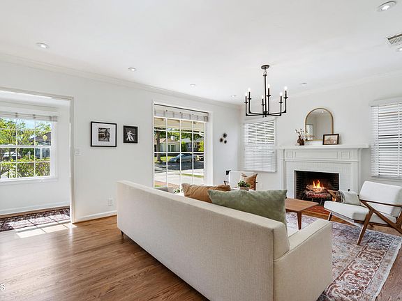 Daisy Villa neighborhood offers a charming single-level home surrounded by trees, featuring a sparkling pool. This residence includes three bedrooms and two bathrooms, measured 1,815square feet on a 6,824 square foot lot. Upon entering, you are greeted by a spacious living room with a fireplace and a large picture window that overlooks the tree-lined street, filling the space with natural light. The dining room and bar area can comfortably accommodate 8 to 12 guests. The bedrooms are accessible via a hallway, ensuring privacy. The family room provides a view of the expansive pool, while the third bedroom serves well as a guest room or office. This cottage home meets modern needs with a tankless water heater, updated plumbing and electrical systems, central HVAC, a Jacuzzi, and wood flooring throughout. The approximately 500 square foot detached garage, along with additional storage space, is ideal for a future accessory dwelling unit (ADU). This inviting neighborhood is conveniently located near Gwinn Park, Pasadena High School Farmer's Market, Trader Joe's, Whole Foods, Peet's Coffee, a Metro Train Station, Hastings Branch Library, shops, restaurants, and is just a short walk to the annual Rose Parade.