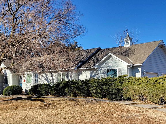 Opportunities like this do not come up often! Nice sized ranch style home sitting on just under 3 acres. This all electric house is located 3 miles from Axtell and approximately 10 minutes to Kearney. Interior features include 2x6 walls, Andersen windows, main floor laundry with sink, lots of custom cabinetry, crown molding in living room and formal dining area and French doors leading to office/den. The basement also has a kitchen, an unfinished bathroom (tub/shower and toilet are installed), 2 egress windows in the bedrooms, and a 9x11 storage room. Step outside to an oversized deck, many trees, and numerous outbuildings that have been outfitted with electricity. This acreage has lots of history attached to it. Make your own memories today!
