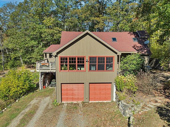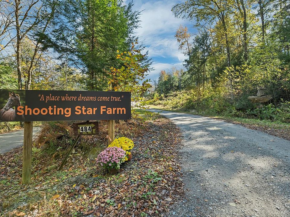 SHOOTING STAR FARM is a private, fully equipped horse facility on 57± acres of open turnout and protective woodland. Purpose-built for breeding and training, it offers turnkey infrastructure and serenity for serious equestrian pursuits—without sacrificing the creature comforts of home. The 1984 chalet-style house is sited for pasture and pond views, with a sunlit chef’s kitchen overlooking the red barn’s activity. The main floor also includes an open, spacious living area w/access to a 3-season porch and deck, for warm-weather relaxation; 2 Bedrooms, and a full bath complete this level. Upstairs, find a restful primary BR with luxurious custom bath. The walk-out lower level features 4 rooms, laundry, a wood stove, and a 2-car garage. For the horses, the 1980s breeding barn has 12 stalls, a wash stall, and a heated feed/lab/tack room, and the centerpiece of the farm is a like-new facility with14 stalls, indoor arena, a lovely galley kitchen, ¾ bath with laundry, and a big office upstairs, both levels with mini splits. Additional amenities include a stunning granite patio w/firepit, outdoor arena, multiple paddocks, hay storage, equipment lean-tos, and ample trailer/staff/guest parking. Off-farm riding includes miles of dirt roads and access to 13,000-acre Pisgah State Park w/62 miles of trails. Shooting Star is more than a farm—it’s a lifestyle investment for those who value privacy, purpose, and the quiet satisfaction of working with horses in a setting that inspires.