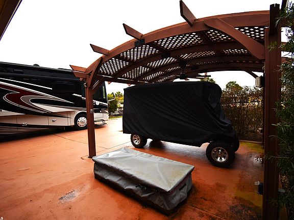 Don't miss this opportunity to own your own private oasis at Bella Terra RV Resort. This is one of the premier luxury RV Resorts in the area with gorgeous amenities inlcuding huge clubhouse, zero entry pool, additional laundry facilities, private restroom & showers, fitness center, dog parks, and dog washing station. And don't forget the well-stocked lake on the premises!! You'll have your own private, 368 sq ft casita, with a large bathroom (equipped with a tiled, walk-in shower) and spacious family room, kitchen prep area (including ample cabinet storage, refrigerator/freezer, and sink with garbage disposal). You don't have to worry about running out of hot water because there is also a tankless hot water heater! There is also an additional 8X10 storage room that is climate controlled and has a stackable washer/dryer. Outside you will enjoy a covered seating area, including outdoor kitchen(natural gas grill, sink, & frig), natural gas fire pit for those chilly nights, and parking for your golf cart. RV must be 15 years or newer and at least 32' in length as well as a Class A Motorcoach. There are always activities offered by the resort, so never a dull moment!! This is RV living at it's finest!!!