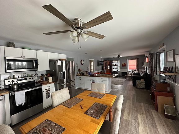 Beautiful Oakfield ranch! Have you been thinking about downsizing? Or looking for your first home? Let's take a look at this 2 bedroom home. Built in 1989 and totally remodeled just two years ago. Custom open concept kitchen with dining area, 6 foot dining bar loaded with cabinets and living room. Stainless steel 5 burner stove, 4 door refrigerator, microwave and dishwasher are all included. New bathroom with sit down, tile shower and glass doors and laundry area. Stackable washer and dryer are included. Laminate flooring throughout and new roof shingles. Hybrid water heater, heat pump and hardwired, full house generator with shed enclosure and Amish storage shed are brand new! Heating system will need to be replaced. Enter the house and basement from oversized 2 bay garage. Back door of garage leads to private, tree lined back yard. Great views of Oakfield Hills right from your own home. Enjoy watching the seasons change, foliage, etc. Windmill rebate to year 'round residents. Near Spaulding and Timoney Lakes and close to recreation trails.