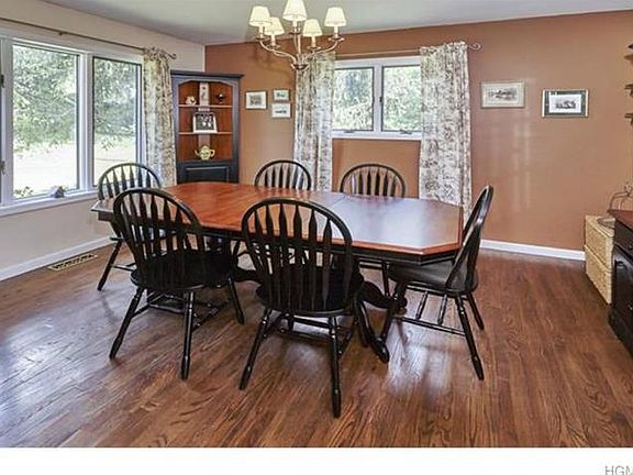 Enjoy the beautiful views from the large deck of this 3 bedroom ,2 bath ranch on a quiet country road. Features hardwood floors, vaulted, wood ceiling in living room with wood burning fireplace. Master bedroom has walk-in closet. Finished basement with slider has family room, office and full bath. Two car garage and 40 foot Amish shed for additional storage.