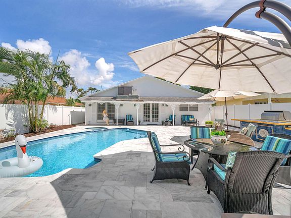 Enchanting East Boca Raton Retreat! Bienvenue to this charming East Boca Raton home featuring 3 bedrooms, 2 bathrooms, a cozy den, and a one-car garage. The warm and inviting kitchen and living/dining area seamlessly blend with the picturesque patio and sparkling pool, where many elegant soirees and joyful gatherings have taken place. A lovely and inviting front yard, along with a new fence, adds to the home's allure. Modern conveniences include a gas hot water heater, gas stove, gas dryer, and a new washer from 2023. Enjoy the freedom of no HOA, while being conveniently located near Downtown Boca, Mizner Park, the Brightline, the stunning Boca Raton beaches. Experience the art of living well in this delightful East Boca haven.