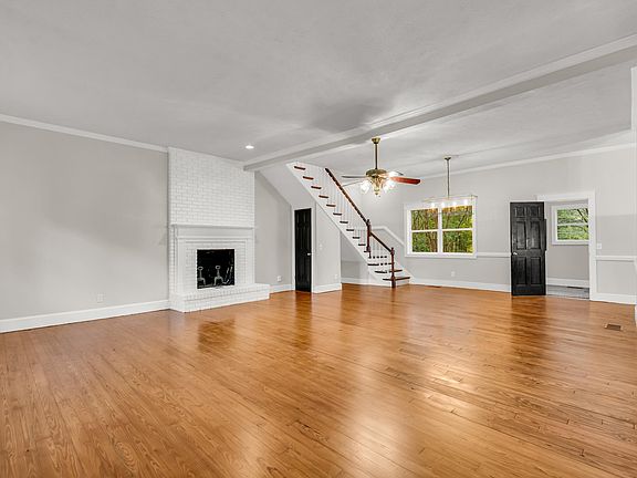 stainless steel appliances and new cabinetry with butcher block countertops. The spacious living area is centered around the wood-burning fireplace. Downstairs offers a half bath for guests, laundry room, 2 ensuite bedrooms - one with a separate entrance to the rear covered deck and the other with adjoining access to a bonus room (currently outfitted as an oversized walk-in closet) which could be an office, 6th bedroom, or whatever your heart desires. Upstairs opens to a landing large enough for a playroom or common area with 3 bedrooms and additional full bath.