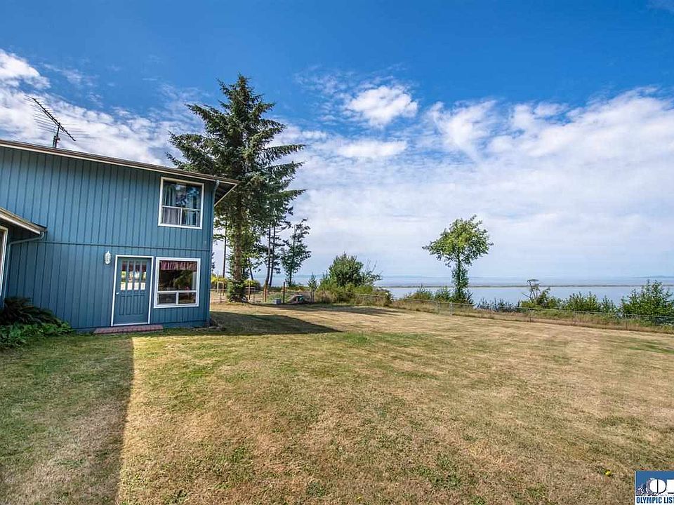 World class views from this waterfront home on acreage. Perched above Dungeness Bay, the huge picture windows of this spacious home look out to the Dungeness Spit, the shipping lanes of the Strait of Juan de Fuca, the San Juan Islands and Victoria, B.C. Walk across the expansive lawn towards the beach to take in the fresh sea air and watch as the bald eagles float above the water looking for their next meal. Price allows you to add your own personal touches and style. Million dollar views on a dead end rd.